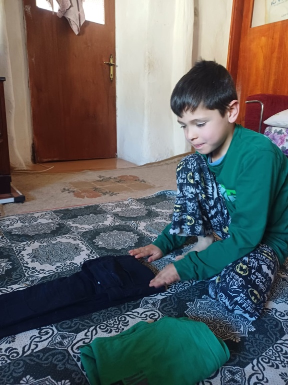 Öğrencilerimizin düzenlilik becerilerinin geliştirilebilmesi amacıyla, öğrencilere kıyafetlerinin nasıl katlanacağı gösterilip kendisinde katlanması istenmiştir.